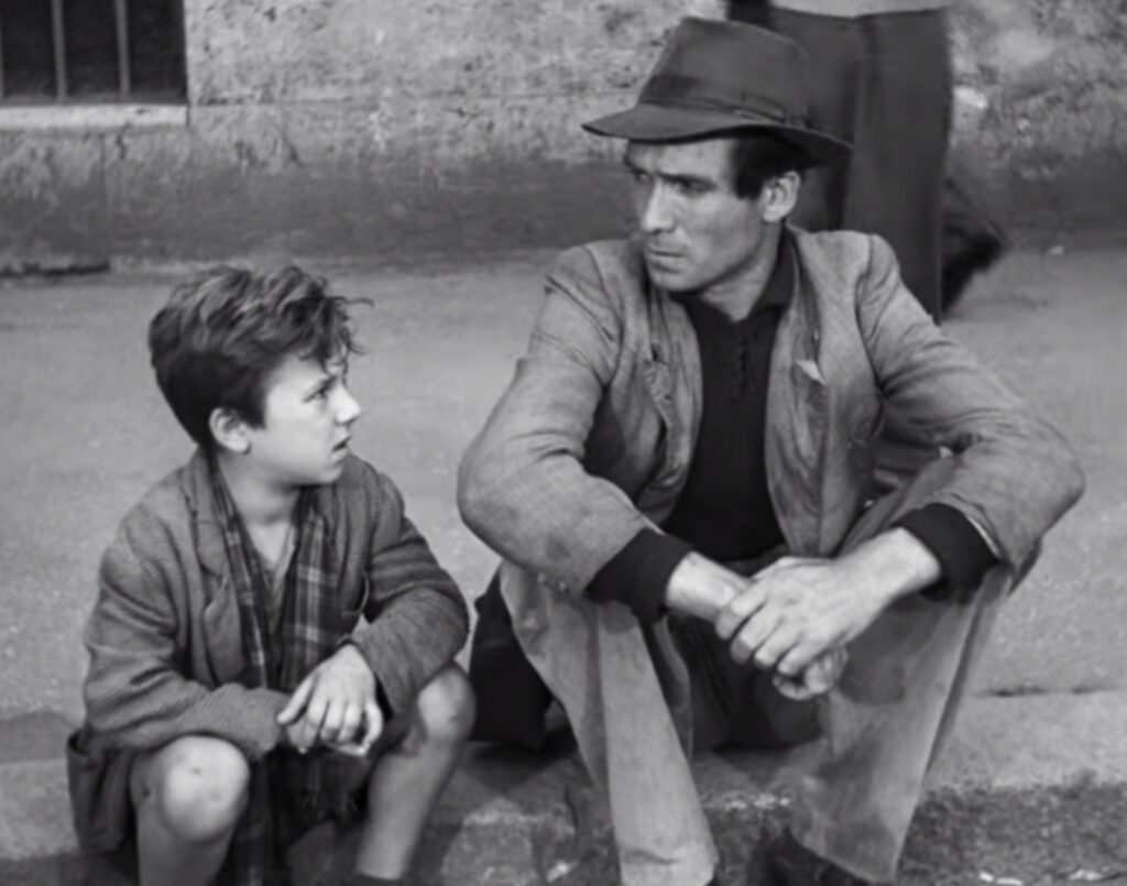 Consider the closing sequence of Bicycle Thieves. After his failed attempt to steal a bicycle in desperation, the father is caught and humiliated before strangers, released only because of his son’s presence. No music instructs the response. No moral speech intervenes. He and the boy begin to walk. The crowd absorbs them. Their hands meet — not in triumph, but in recognition of shared fragility. They move forward without resolution. The city continues.